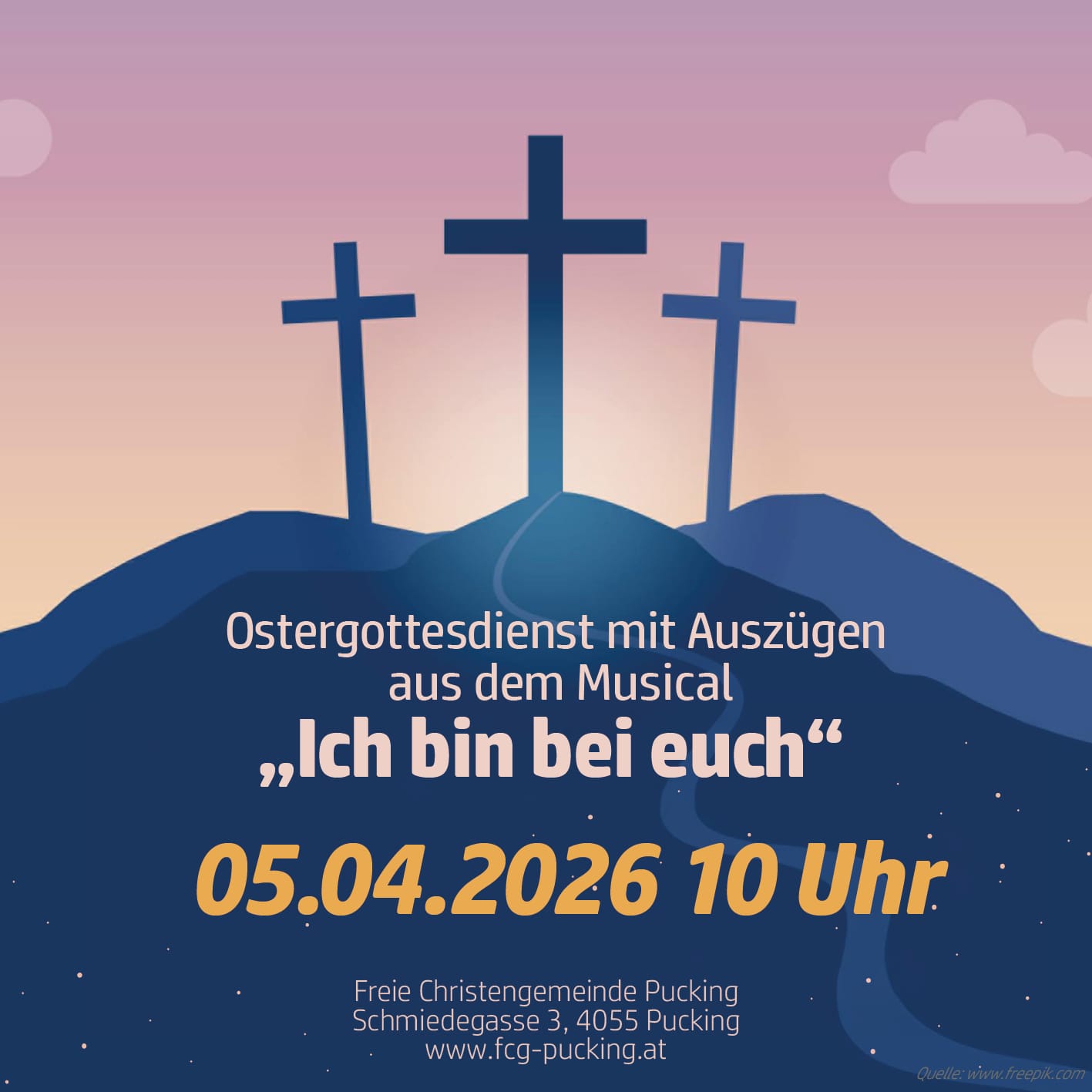 Auch dieses Jahr findet unser Ostergottesdienst mit einem Musical statt! Wir freuen uns auf zahlreiches Erscheinen